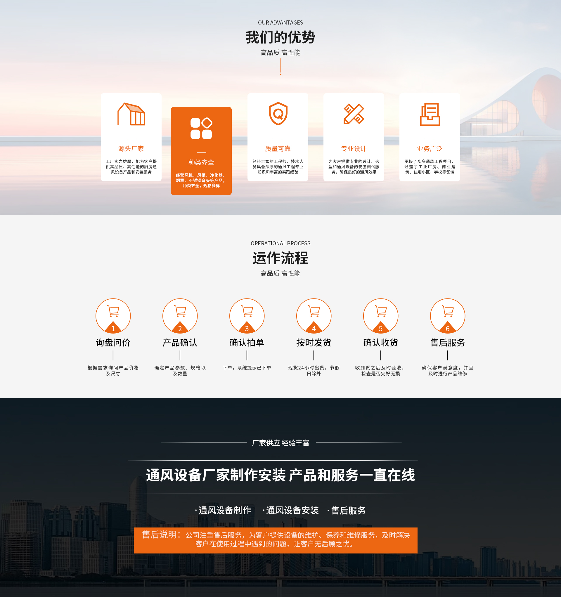 本公司是一家专业从事通风设备制作与安装的企业。公司凭借多年的行业经验、先 进的技术和专 业的团队,致力于为客户提供高品质、高性能的厨房通风设备产品和安装服务。